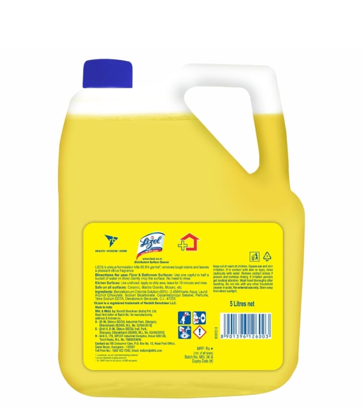 Be the first to review “Lizol 5 Litre – Citrus, Disinfectant Surface & Floor Cleaner Liquid | Suitable for All Floor Cleaner Mops | Kills 99.9% Germs| India’s #1 Floor Cleaner Pack of 2”